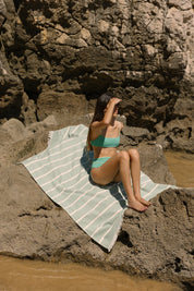 Made in 100% high-quality cotton, our beach towels have terry fabric on the backside, perfect to absorb the water drops on your skin after a fresh swim in the sea, and fouta fabric on the frontside, to guarantee a comfortable and stylish sunbath.