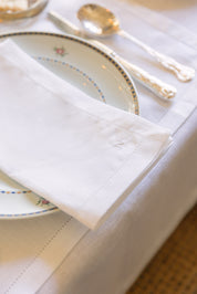 The Mafra collection, in classic white linen with a hem-stitch finish, includes: tablecloths (170x170 cm, 170x250 cm, 170x300 cm and 170x350 cm) ; table runners (50x160 cm) ; placemats (50x35 cm); napkins (50x50 cm - pack of 2); and cocktail napkins (15x15 cm - pack of 4).