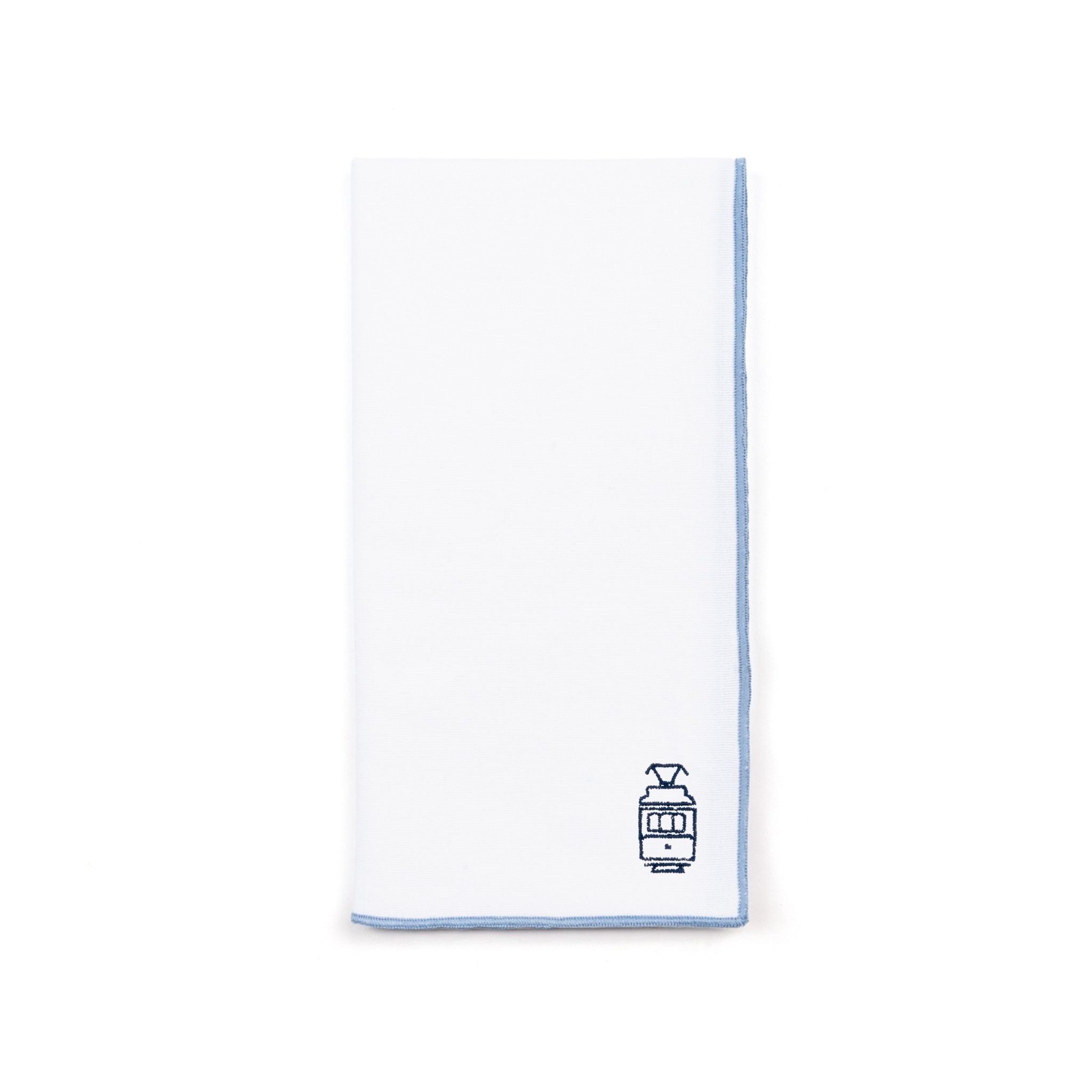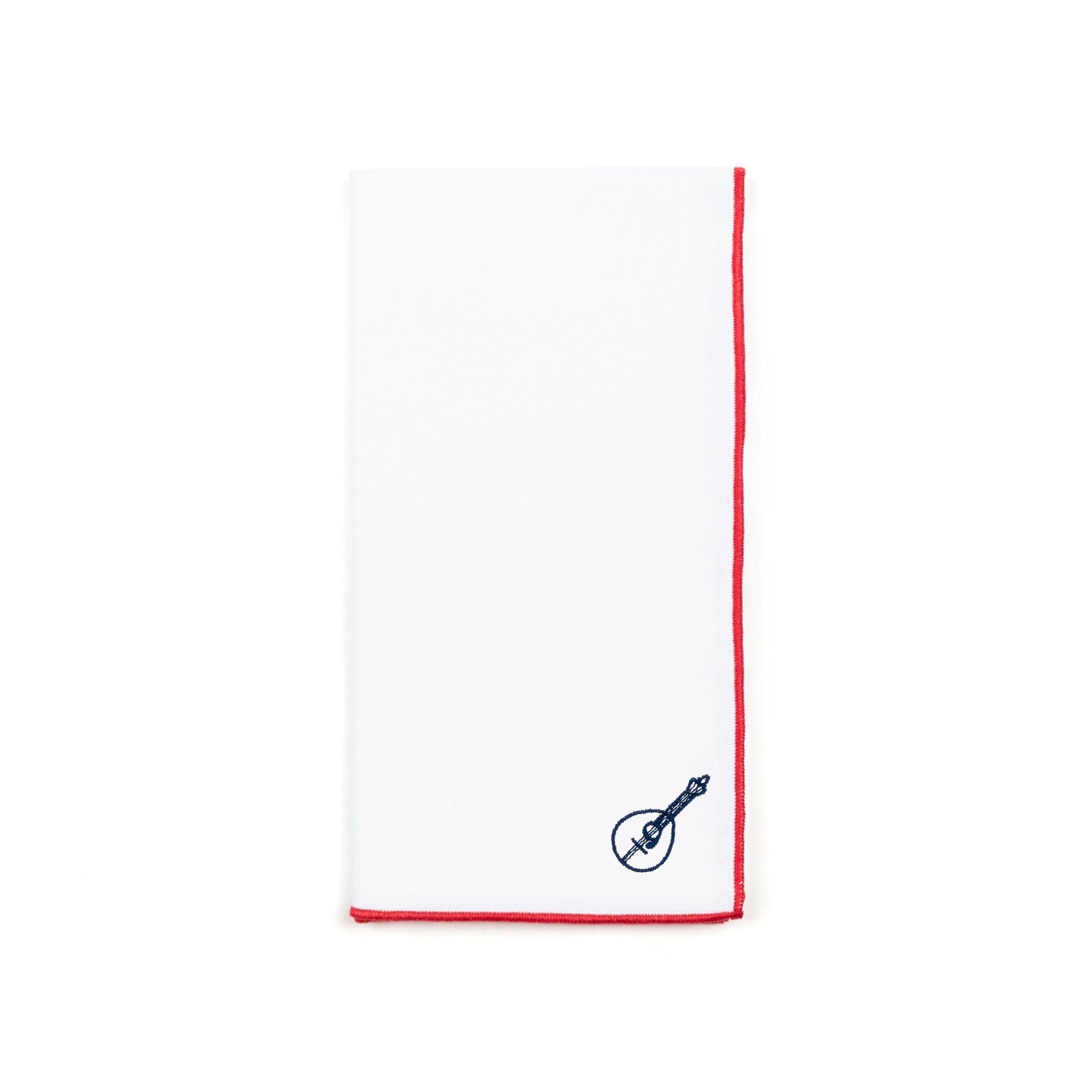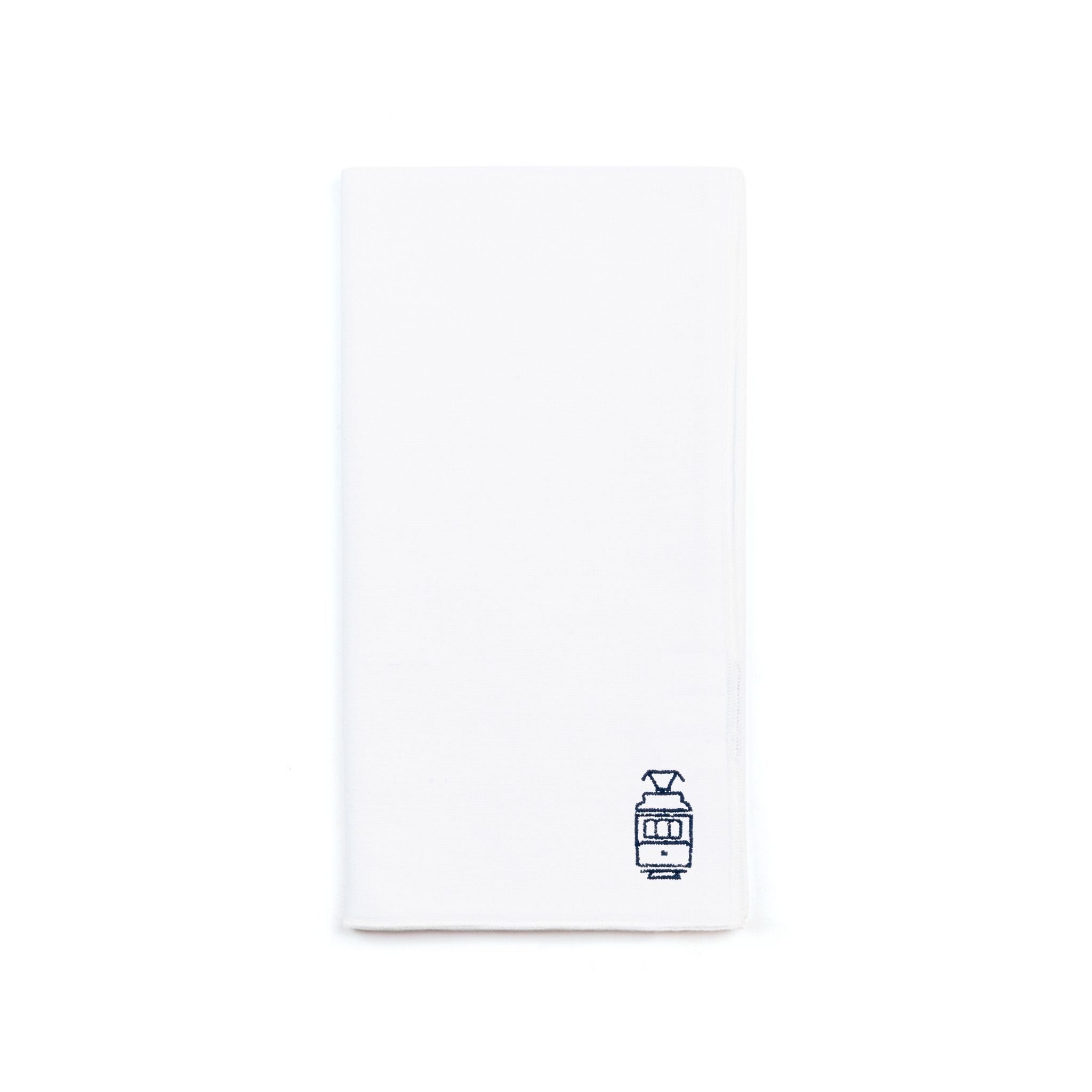These napkins, cocktail napkins, and placemats feature four designs - a sardine, a tram, a coffee & custard tart, and a Portuguese guitar - inspired by everyday icons of folk life in Portugal.